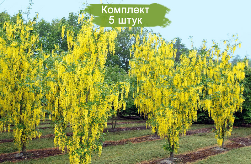 Добавьте яркости и элегантности вашему саду с помощью саженцев бобовника Ватерера (Watereri). Этот великолепный кустарник известен своими длинными, свисающими кистями золотисто-желтых цветов, которые создают потрясающий визуальный эффект в период цветения.