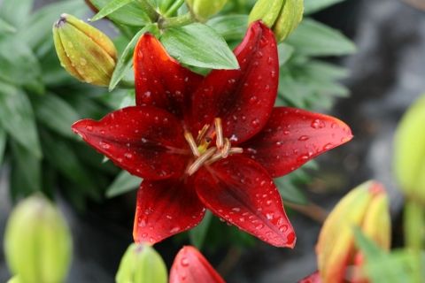 - Цвет цветков: насыщенный красный с темно-бордовыми пятнами