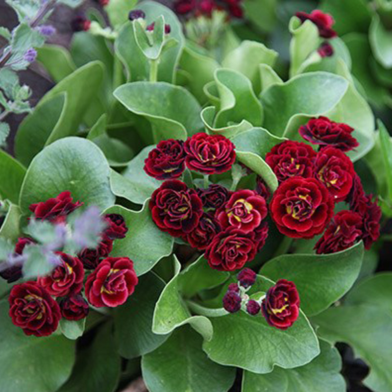 Примула ушковая Кримсон Глоу (Crimson Glow) – это изысканное многолетнее растение, которое станет настоящим украшением вашего сада. Этот сорт примулы отличается яркими, насыщенно-красными цветками с нежным желтым центром, которые собраны в плотные соцветия. Листья растения имеют характерную овальную форму и покрыты легким серебристым налетом, что придает кусту особую декоративность.