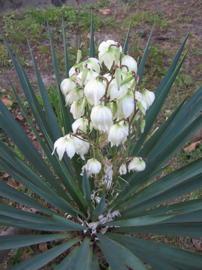 Цветение юкки – это настоящее зрелище. В летний период растение выпускает высокие цветоносы, усыпанные крупными белыми цветками, которые привлекают внимание и создают атмосферу южного курорта.
